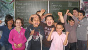 Es ist Nachmittag an der Michael-Ende-Schule in Rödelheim. Doch zwölf Schüler sind noch da. Die Dritt- und Viertklässler der „Fußball trifft Kultur“-Gruppe bleiben gerne noch etwas länger und lesen und bearbeiten, gemeinsam mit ihrer Lehrerin, die Königsgeschichten über den nicht sonderlich klugen König, der permanent falsche Dinge behauptet und damit den Kindern in seinem Königreich das Leben schwer macht.